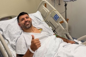 阿圭罗在业余比赛中肌腱断裂,因此接受手术,他在社交媒体上晒出躺在病床上竖起大拇指的照片,配文:“搞定了,一切都很顺利。”