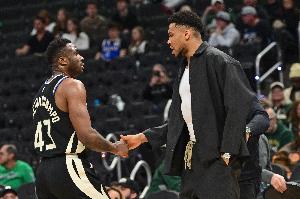 本场比赛,雄鹿球员字母弟弟和字母哥哥在最后时刻获得出场机会,其中字母弟弟出战4分27秒,投篮2中0均来自外线,罚球2中1,拿到1分1篮板的数据;字母哥哥出战5分12秒,投篮1中0来自外线,没有得分入账,拿到1篮板1抢断的数据。