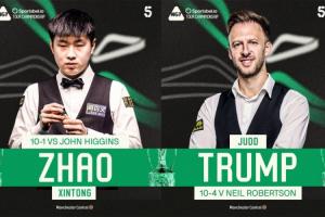 决赛对阵,赵心童将迎来和特鲁姆普的巅峰对决,冠军奖金15万镑,亚军6万镑。